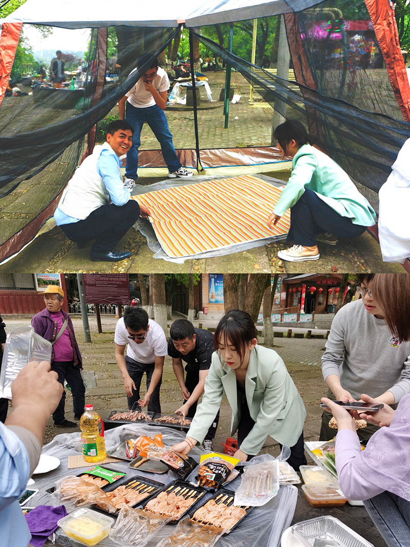 到達(dá)地點(diǎn)后,所有人主動(dòng)加入勞動(dòng)小組,我們一起燒火燒炭,布置桌子,搭帳篷,燒烤等。