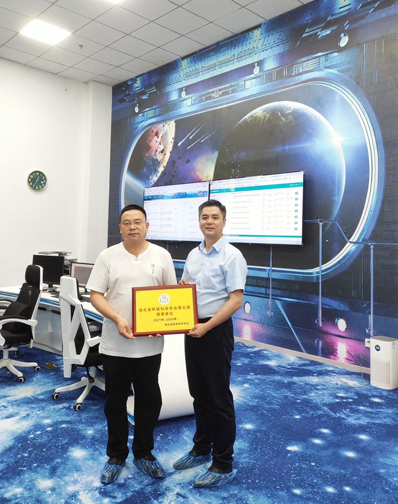 ? ??參觀后,熊文教授代表湖北省環(huán)境科學學會向鄧博博士頒發(fā)了“湖北省環(huán)境科學學會第五屆理事會理事證書”以及“湖北省環(huán)境科學學會第五屆理事單位”牌匾。